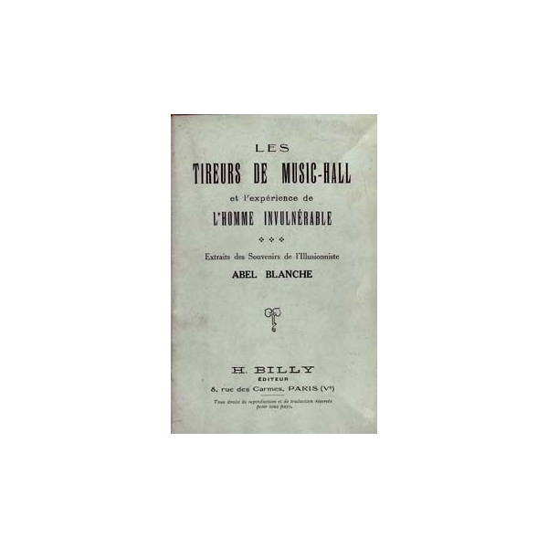 Et l'expérience de l'Homme Invulnérable. Extraits des Souvenirs de l'Illusionniste. (Abel, Louis-Joseph Blanche, était un magicien érudit et un fin lettré dont les études sont d'un intérêt historique et documentaire incontestable). 17.5 x 11.5 cm. 32 pages. H. Billy Editeur.